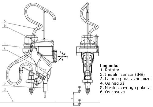 - Delovanje (rezanje pod kotom) v robotskem načinu - pri tem načinu gre za rezanje pod kotom, pri katerem si naprava pred začetkom rezanja z inicialnim višinskim senzorjem otipa več točk na pločevini v področju rezanja. Ta način je primeren za rezanje majhnih kontur in debelejše pločevine.