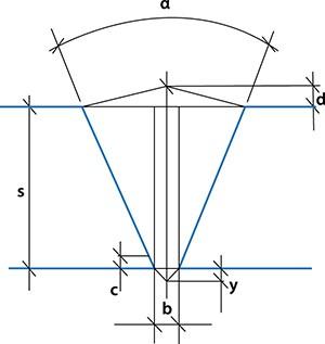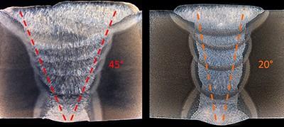 | Dimenzije zvarne reže | 45° - tradicionalna rešitev | 20° - nova rešitev RGT |