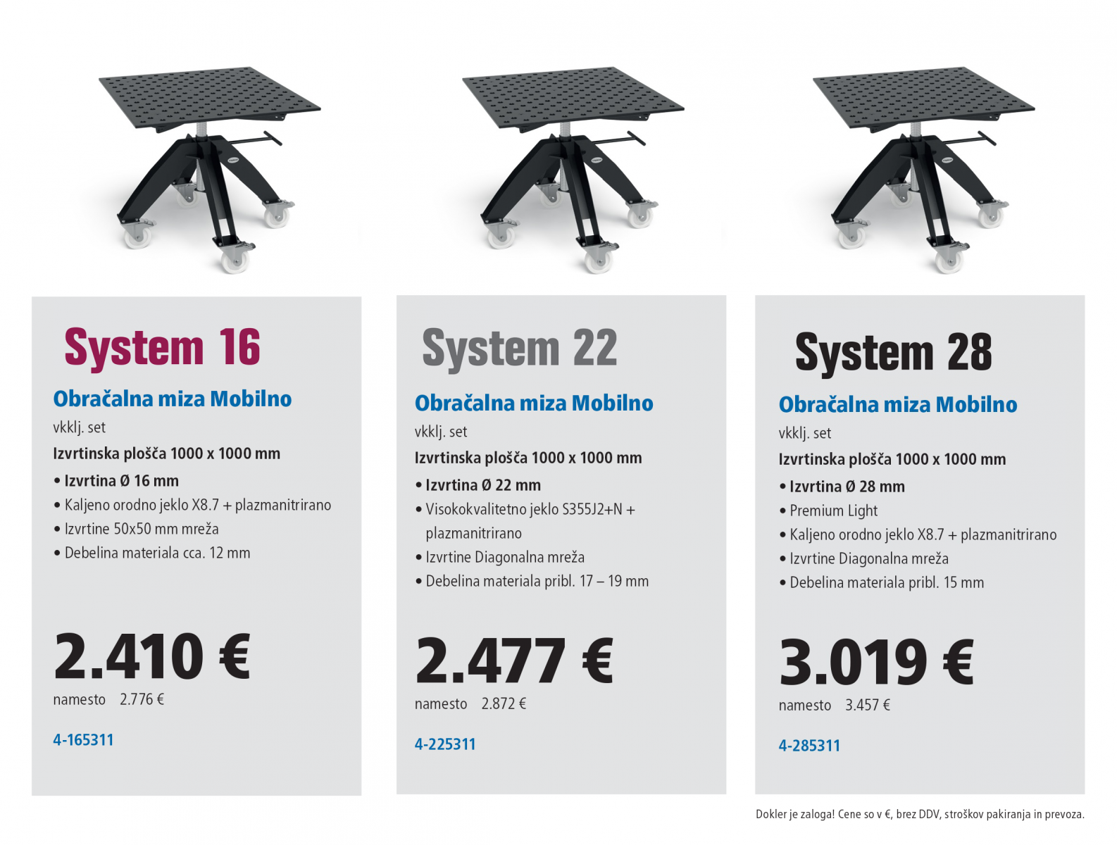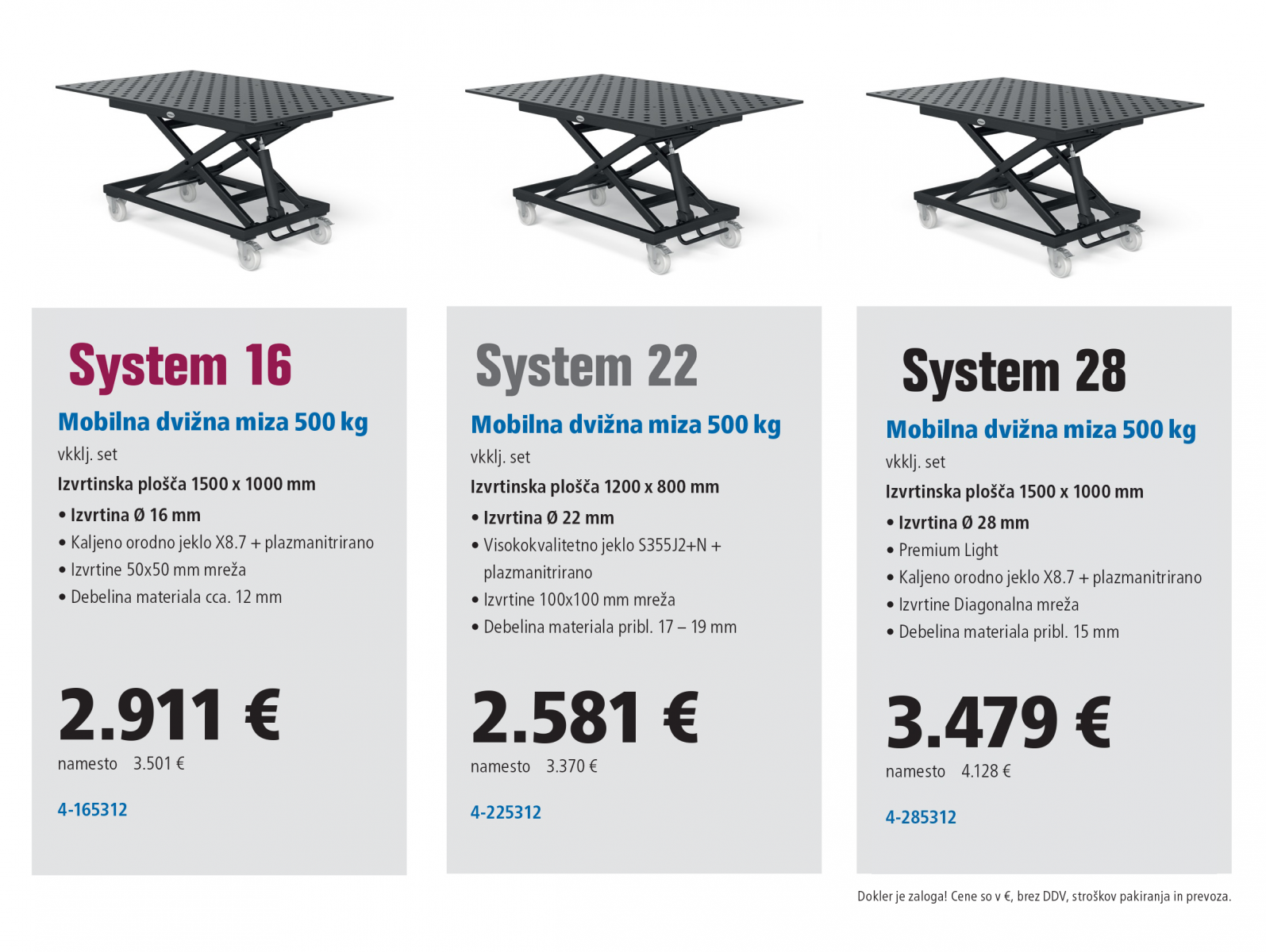 Vse cene so brez DDV in vključujejo vso opremo po specifikaciji. Cena ne vključuje stroškov pakiranja in poštnine. Cena velja do konca septembra 2021 oz. do razprodaje zalog.
